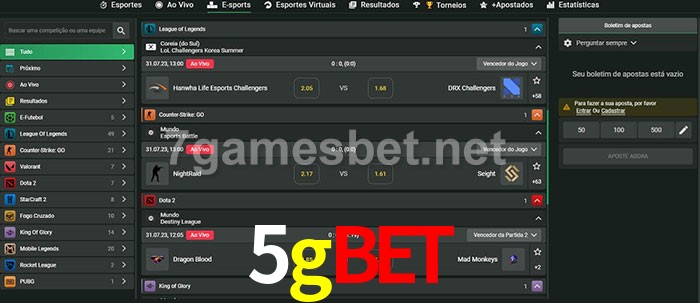 A aposta 5gbet oferece aos jogadores a experiência mais conveniente de apostas em eSports!